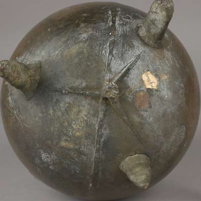Voici un pied de marmite un peu particulier car il est en bronze mais la marmite devait être en fonte (technique de fabrication de la marmite ???)