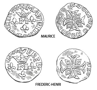 [501] Oui le M est bien visible, mais les princes d'Orange Maurice et Frédéric-Henri ont copié tous les 2 les liards au M des Dombes frappés sous Marie de Montpensier et Anne-Marie Louise d'Orléans.