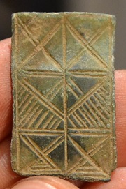 Voici une plaque en cuivre décoré de 2.8 cm de haut pour 1.7cm de large.
