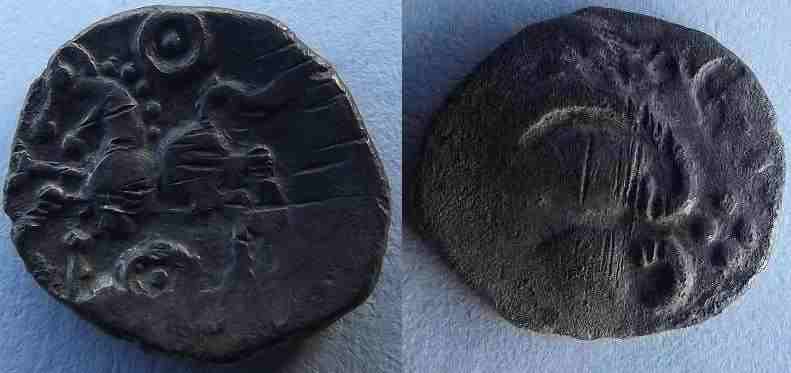 Bonsoir . A mon avis , avec les quelques lettres que l'on devine à l'avers et au revers , il s'agit d'un denier Séquane . Ce type de denier est connu sous le terme Q DOCI .