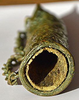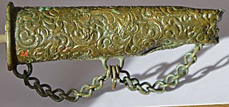 Voici un étui qui a le même aspect que l'objet recherché, même si je pense que ma proposition est plutôt un objet à usage militaire.... poudre ...???