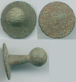 Oui en effet, il est fort possible que le coté ' rond plat ' etait emprisonné dans du cuir ou tissus qui le maintenait, et que la partie ' boule ' permettait d'y fixer un autre élément !