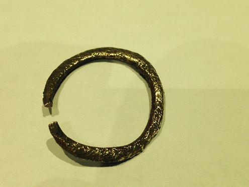 voilà un anneau trouvé hier au milieu des bois loin de tout en Corrèze. A sa sortie de terre un petit morceau brillait fortement tout le reste était terne (pas de patine brun vert plutôt grisâtre). Ce n'est qu'au nettoyage qu'il s'est mis à briller très fortement, même si toutes les aspérités sont noires. (la photo ne rend pas son brillant jaune)