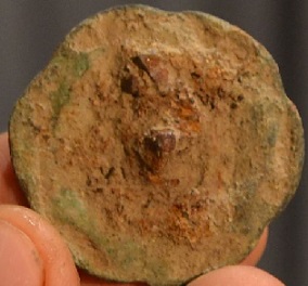 Il y a au revers de reste de fer et de la rouille (semble-t-il le reste d'un clou...).