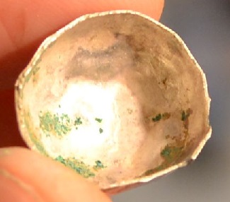 Voici un petit (un morceau ?) d'objet rond, creux et semble-t-il en argent.
