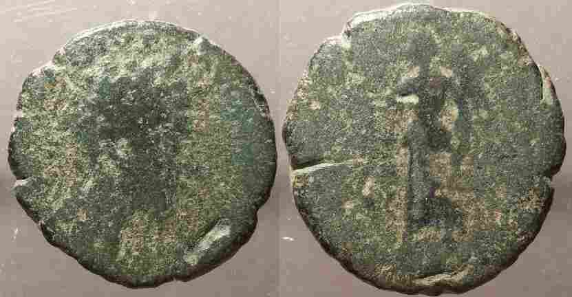 je vous soumets ce sesterce pour identif. Pas facile vu l'usure mais bon on ne sait jamais.