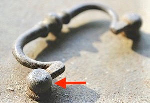 une particularité est le petit trou que l'on aperçoit . je pensais à une tête d'épingle mais suis sur de rien. ou.............. pourquoi pas un élément de fibule.