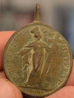 Hélène ou sainte Hélène est une impératrice romaine, épouse de Constance Chlore et mère de Constantin. d'où IMPERAT sur la médaille