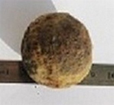 Merci diplodocus pour ces recherches. J'en déduit que ma sphère en ferraille (densité mesurée env. 7.1 à 7.3) est un boulet biscaïens ou balles en fer de calibre 3 ayant subit les outrages de l'oxydation.