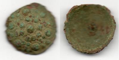 [544] Voilà un petit objet en bronze trouvé en labour du 29 de 20mm de diamètre .