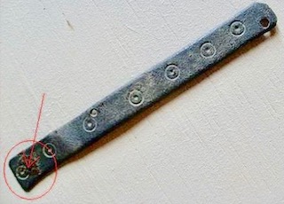 J'ai aussi pensé à un ferret mais les trous supposés pour la fixation sur le cuir ne sont pas bien répartis, il y a un côté pratiquement non fixé.