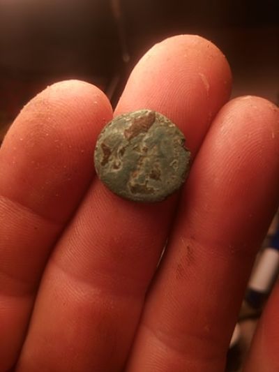 petit monnaie avec une double tête homme femme, l'autre face est complètement encrouté