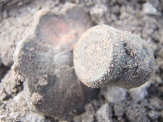 Les deux petits trous ne percent pas complétement la base et le trou au centre fait 0,5 cm de profondeur.