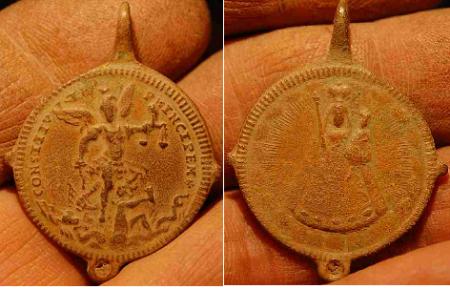 Voici la 1ere, sans doute une médaille de chapelet vu les 2 bélières opposées, que j'avais datée du 17eme post de nordwind67 N° 74654