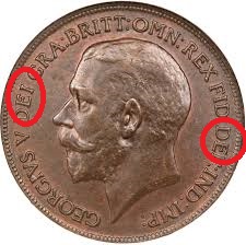 peut être un penny Georges V pour les lettres reste a savoir ou elles sont sur tes monnaies...