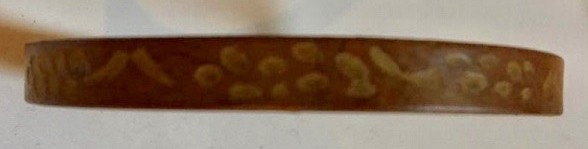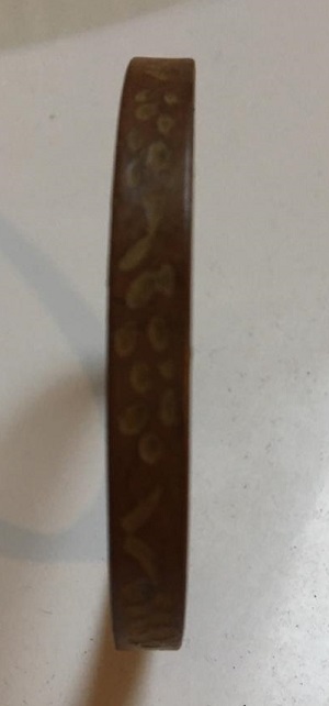 trouvé ce bracellet (?) cuivre ou bronze (?) 7 cm de diamètre 2 epais, avec jolie motif gravé... des idées?
