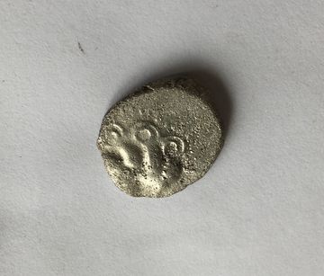Je vous soumets cette petite monnaie peu lisible, entre 13 et 15 mm de diamĂštre, trouvĂ©e au pied d'un arbre en forĂȘt vosgienne... Elle semble ĂȘtre en argent mais je ne sais mĂȘme pas dans quel sens vous la prĂ©senter pour contribuer Ă  son identification... Si d'aventure quelqu'un avait une idĂ©e, je serais preneur...