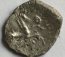 Je n'ai rien trouvĂ© d'approchant de mon cĂŽtĂ© dans les planches de la 'Gaule Belgique', selon une logique gĂ©ographique, mais la piste de diplodocus semble la bonne . Hormis le fait que la monnaie est trĂšs dĂ©centrĂ©e, l'hypothĂšse d'un quinaire/denier Ă©duen au cheval (Ă  la lyre, absente cependant sur la mienne) et Ă  la tĂȘte bouclĂ©e tient la route ... Elle a voyagĂ© en revanche cette petite...