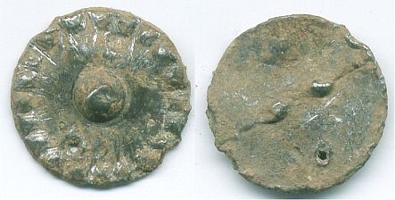 Diamètre 15mm Bronze étamé. Bossage sur le pourtour, le revers comporte deux points de fixations.