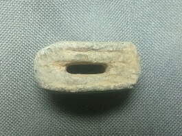 L'objet mesure 1,6cm de haut, 3cm au plus large (côté trou), 2cm au moins large, 1,9cm d'épaisseur, le trou fait 1.2*0.3cm et tout ça pour une masse de 42,26g.