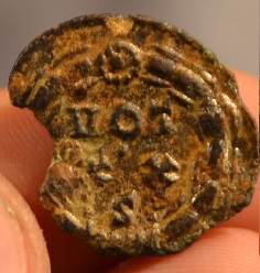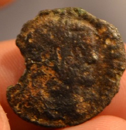 Voici une monnaie romaine malheureusement cassée qui dispose encore d'un revers en assez bon état.