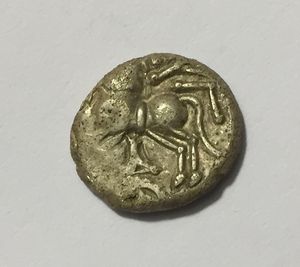 Très agréable sortie hier dans une forêt lorraine avec en prime ce petit quinaire, en argent me semble-t-il. Il mesure 12 mm de diamètre au plus large et pèse environ 2 gr.
