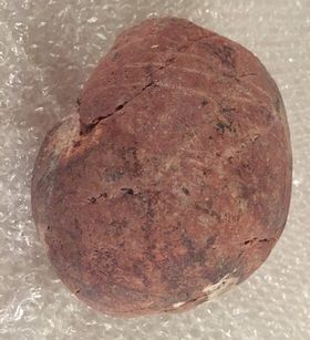 La 'chose', pas vraiment sphérique mais plutôt ovoïde, mesure environ 15 x 12 x 10/11 cm et pèse 2.575 kg.