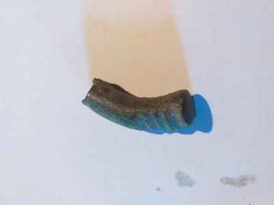 [192] Bonjour voici un vestige de ce que je pense être un bracelet ou de torque gaulois, sans certitude vu ce qu'il en reste. Les stries et la forme permettront peut-être à certains de le confirmer...