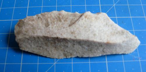 Voici la lame en grès que je voulais envoyer l'autre jour mais j'ai envoyé à la place une lame en silex. Dimensions 7cm50 X 3cm épaisseur maxi 1cm trouvé dans un environnement montmorencien . Pour moi lame transformée en racloir. Ai-je raison ?