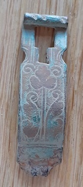 trouve ce fermoir en cuivre ou bronze 55 X 15 mm, que pouvait il bien fermer? je le vois bien XIX avec le decor floral...