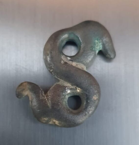 Ca évoque l'Art Celte pour moi, mais impossible pour l'instant de donner une attribution solide, peut-être une applique !