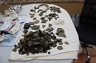 Je vous présente les fragments trouvés lors de l'extraction d'une souche d'arbre qui forment un énorme puzzle à reconstitué. Le trou va s'agrandir car je pense que d'autres tessons vont ressurgir (enfin j'espère) car j'ai beaucoup de morceaux orphelins.