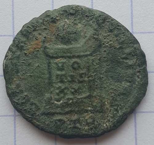 Moi aussi j'y verrais une monnaie de Constantin 1 car à droite du buste je lis TINVS