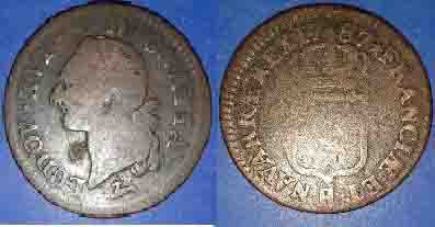 La pièce, pesant 9,9 grammes et d'un diamètre de 30 mm, était vendue comme un 1 sol de 1787, atelier de Rouen. En rentrant chez moi, j'ai cherché la pièce dans mon Gadoury et, à ma grande surprise, elle n'était pas répertoriée. J'ai également vérifié sur Numista, et je ne l'ai pas trouvée. Bien sûr, cela n'est pas forcément définitif, car j'y ai parfois trouvé des erreurs, mais pas sur des pièces françaises à ma connaissance.