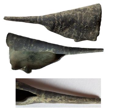 Trouvé en labour du 29 .Tile enroulée en cuivre , Longueur 75 mm.