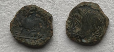Sauf erreur mais je crois que c'est un Bronze PIXTILOS classe II à la louve et au lézard c. 40-30 avant J.-C. CARNUTES