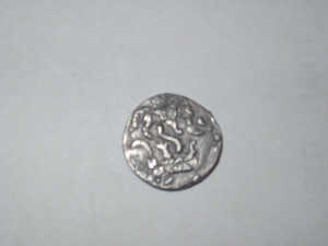 je ne sais pas où vous habitez, mais ça serait bien si c'était dans la Somme ou à coté car c'est surement une monnaie Gauloise des Ambiani inédite? Il existe plusieurs bronzes avec l'archer. Au revers ce sont 2 loups opposés.
