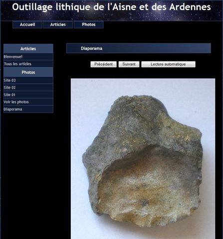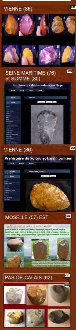 Voila plus de deux ans que cela existe pour notre plus grand bonheur semble-t-il. Plus de 30 photoblogs ou sites qui couvrent pas mal de la france voire un peu au delà . Des dizaines de milliers d'outils en ligne, bientôt le 8000ème visiteur, permettant de voir toute une panoplie de faciès, de matériaux, de débitages, de variantes locales, ... une mine d'infos. De quoi aussi s'affuter le diagnostic et s'éduquer 'de visu'. De comparer, de constater, ... (la difusion des haches en dolérite de Plussulien, par exemple, ou de lames en silex du grand-Pressigny ...)