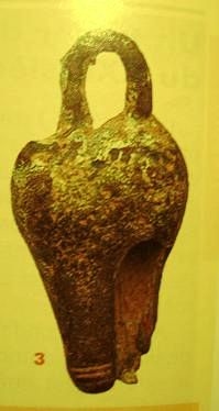 Voici une photo (DP n°68, dossier sur les grelots) d'un ''crotale'' du Hallstatt trouvé en Alsace par Shiva. Hauteur : 50mm.