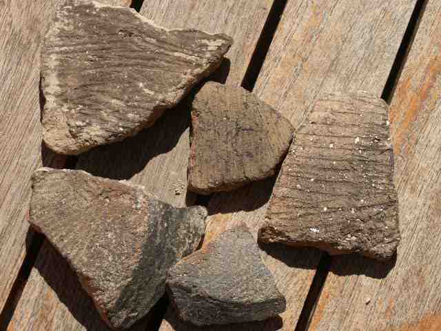 Cependant sur la première photo les céramiques ne me paraissent pas vernies mais plutôt lustrées. Cela pourrait correspondre à des céramiques communes sombres trouvées sur le site de Locmaria en Quimper. On y rapporte que certaines formes issues de La Tène sont lustrées lorsque l'on atteint les couches gallo-romaines. Les pâtes sont alors grises ou noires et la cuisson se fait en atmosphère réductrice.
