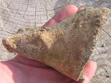 Touvé ce morceau de poterie très fruste avec des restes de noirceurs à l'intérieur dans des vignes surplombant la vallée du Cher dans le 41. Evidemment tout le monde s'est foutu de moi à table et on a bien amusé la galerie avec Philippe, mais je pense à un récipient (creuset) pas jeune du tout. Il mesure 11 cm au plus long pour 9 cm au plus large et pèse 260 g. Je le mets en photos sous toutes les coutures. Si qqu'un a une idée ?