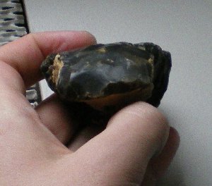 Un peu plus sérieusement, je pense que ce n'est pas un outil, ni même qu'il y ait eu une intervention humaine, même si la forme générale le laisserait penser. Il n'y a pas de traces d'enlèvements classiques nulle part, sauf en R5 où il y a un enlèvement 'en creux' qui aurait pu être intentionnel, mais tout autant dû à une pression externe (piétinement, par exemple : qui peut faire de fausses 'retouches' ... multiples parfois). Mais là , il n'y a qu'un seul enlèvement de ce type. Si cela avait été une retouche, je pense que, tant qu'à faire il en aurait aligné trois ou quatre, comme cela ce voit sur des outils très frustres de ce genre là (mais issus d'un éclat 'orthodoxe', avec bulbe i tutti quanti). Bon, cela n'exclut pas la part de rêve qui fait que, tel quel, ce 'machin' ait pu être utilisé, voire même comme je l'avais très précisement décrit plus haut ...