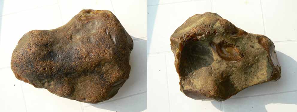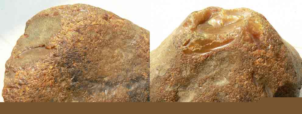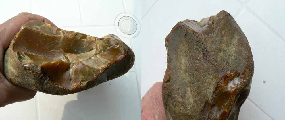 On trouve aussi des stigmates comparables sur les rognons ayant servis à renforcer de vieux chemins. Le passage répété de véhicules lourds finit même parfois par leur donner l'aspect de percuteurs! Méfiance!