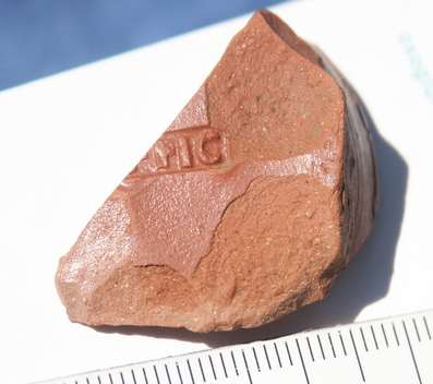 FIC est la fin de très nombreuses signatures de potiers; c'est l'abbréviation de OFFICINA (atelier, officine). Donc, dans la partie manquante était inscrite le nom du potier.