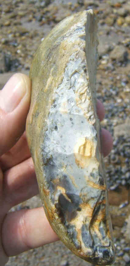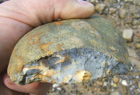 Cette trouvaille de Marc m'intéresse. Il m'arrive de trouver ce genre de galet de silex fracturé et sommairement retouché sur le littoral Charentais. Je me pose aussi la question à qu'elle période pourrait se référer ce type d'outil. Néo ou paléo??
