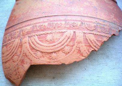 Selon nos amis et spécialistes Anglais avec qui nous collaborons et que j'ai mis à contribution pour l'occasion, il s'agit d'un tesson de Lavoye, dans le style du potier GESATVS.