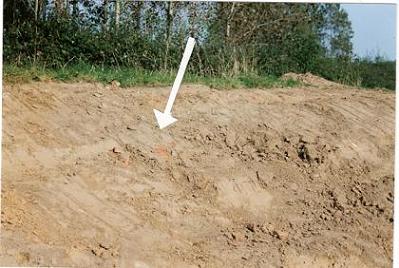 A l'emplacement de la flèche , on peut voir quelques fragments de tégulas à environ 50 cm de profondeur .