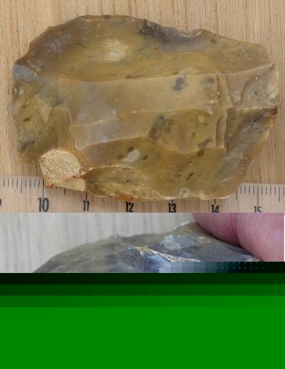 Ce pourrait peut être être un nucléus, mais je pense surtout à une ébauche de hache qui aurait avorté. Quel est l'avis des experts ?