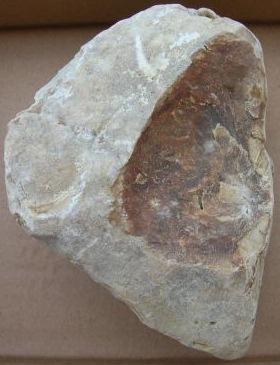 Morceau de calcaire avec l'empreinte d'un morceau de lamellibranche? ou autre fossile.