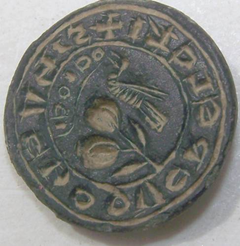 [931] Plutôt XIVe je pense à cause de la forme des lettres, mais il faudrait voir le revers de l'objet.
